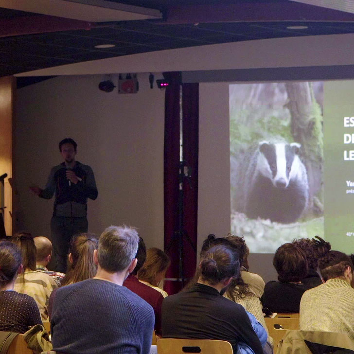 Mon engagement en faveur du blaireau et de la faune sauvage m’amène à partager ma passion à travers des conférences destinées à mieux faire connaître cet animal fascinant au public. À ce jour, j’ai animé plus d’une trentaine de conférences en France, ainsi qu’en Belgique et en Suisse.
