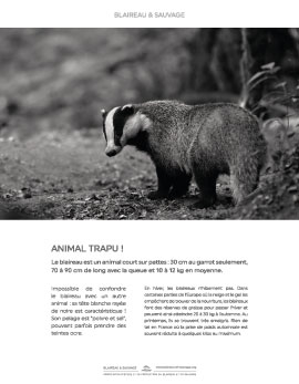 72 pages mêlant textes et photographies noir & blanc, pour découvrir le blaireau, animal souvent méconnu et mal-aimé de nos forêts.